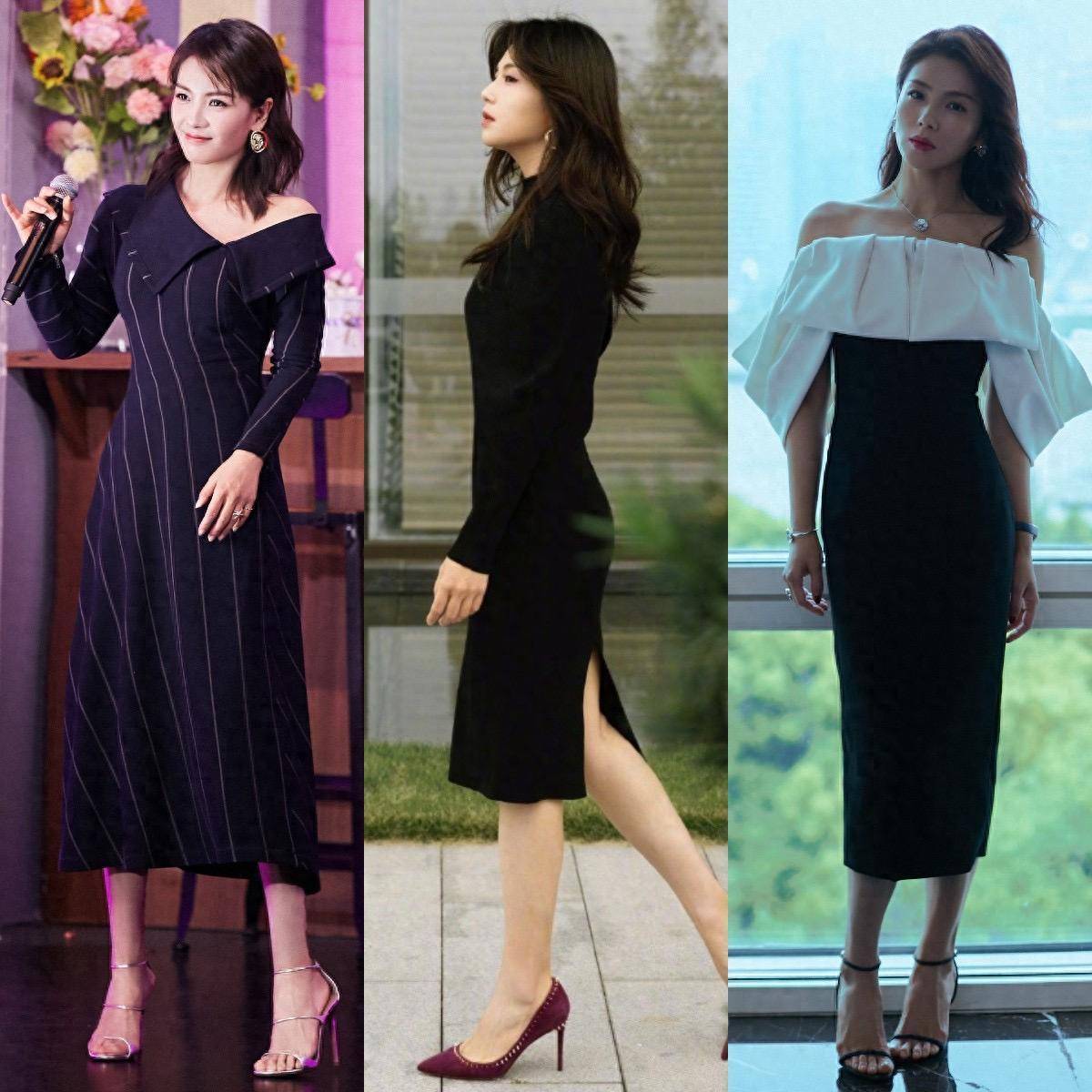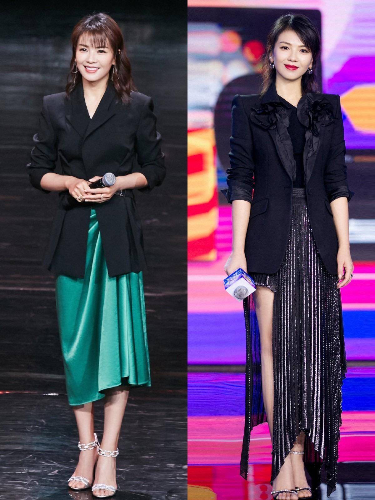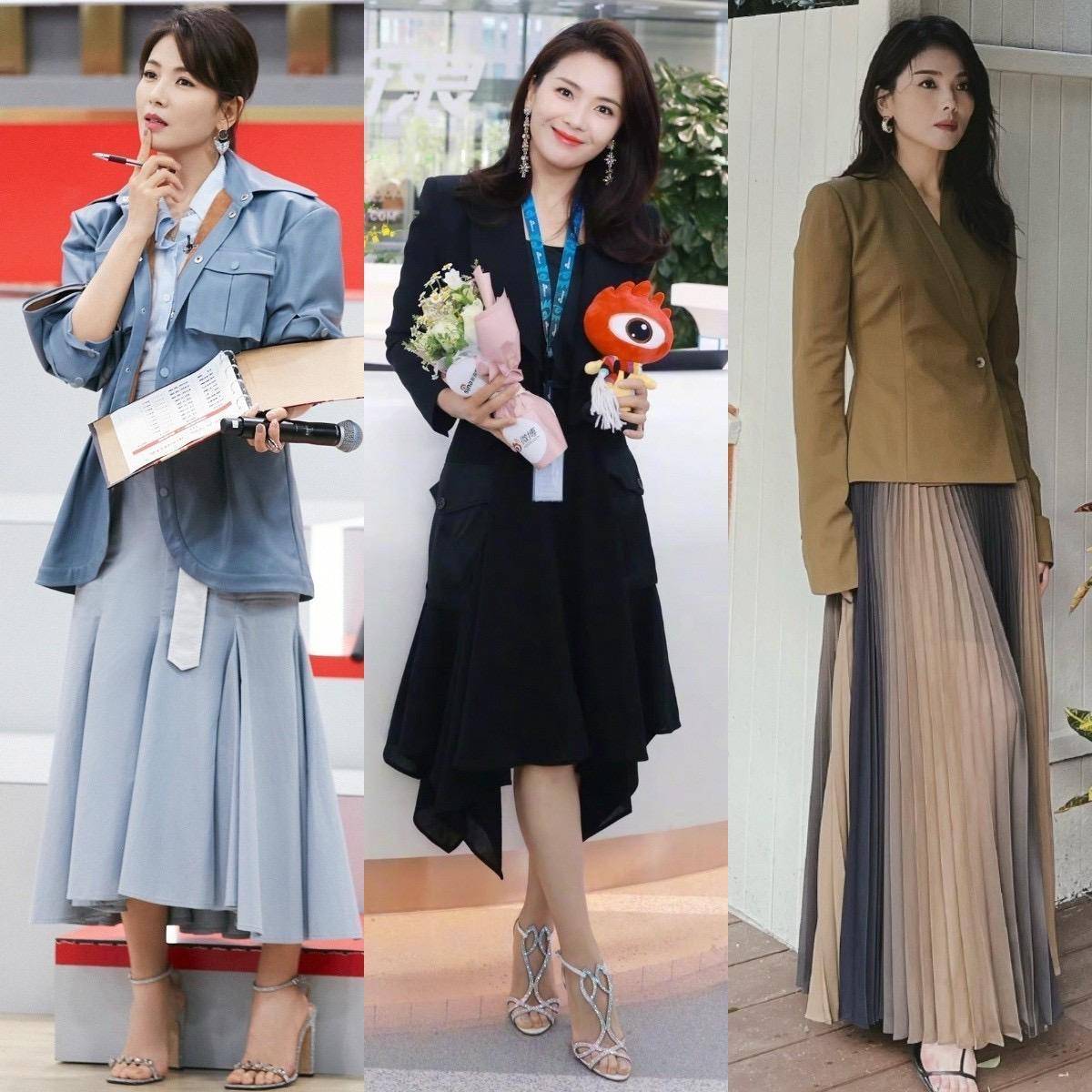作为经常出席正式场合的女明星,衣橱里最必不可缺的就是西装,而且时尚款西装,还能日常通勤一把抓。带点设计感的皮衣西装、收腰西装、短西装,配各种类型的半身裙,都是很出彩的。