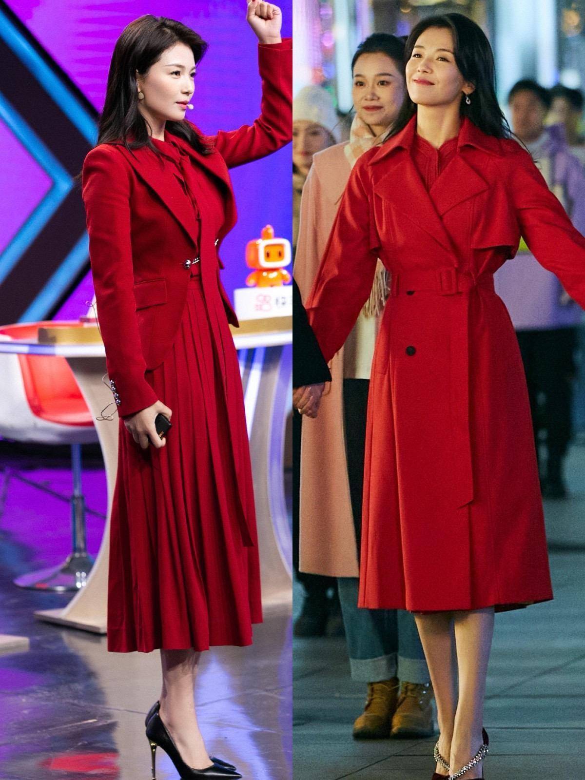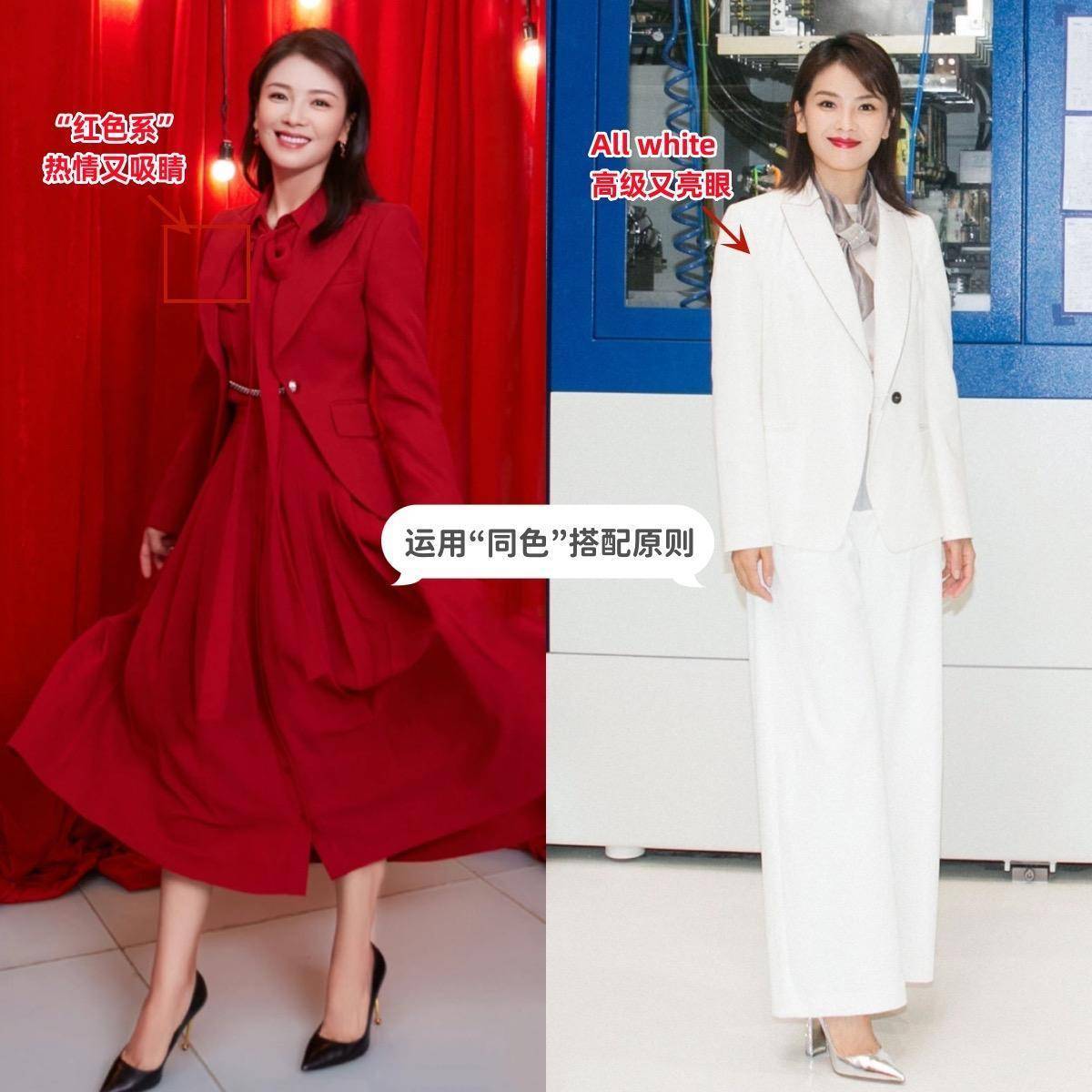 纵观刘涛的穿搭,你会发现她的搭配模式通常都是简约大气的路线,甚至在色彩的运用上,大多数时候都会用到“同色”搭配原则,主导单品一种颜色用到底,再搭配一双对比色的鞋子,就能突出层次感。