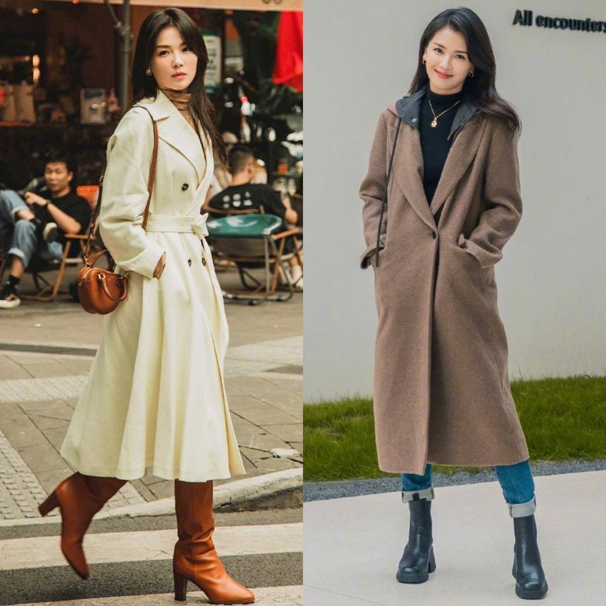 中年女明星想要让形象气质更出众,就不能穿太臃肿的单品,尤其是到了秋冬季节,像一些蓬松感十足的棉服、Oversize外套,穿在身上就很不得体,但是线条感流畅的长款大衣,配靴子就很有型。
